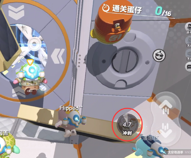 Ⅰ.在逃离空间站这个关卡里面,蛋仔丢掉了自己的飞扑,抓投和滚动按键,转头背上了小喷气背包。喷气背包可以让蛋仔使用喷气加速的技能,这个技能CD只有短短的5秒钟,释放起来一定不要手软,CD一结束就赶紧使用。